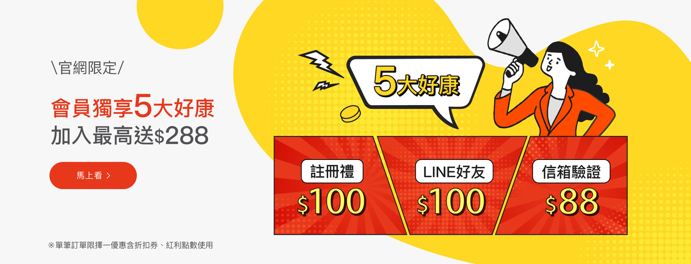 新用戶註冊立即獲得100折價劵還有更多優惠!