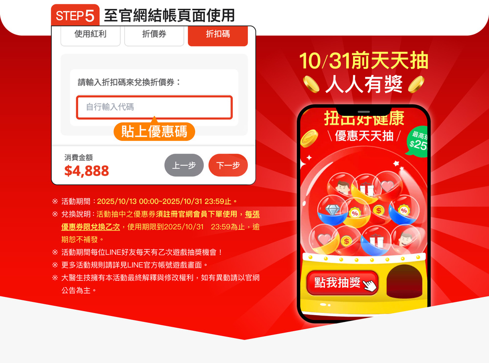 最高現折 $250 抽到立刻用 快把好手氣,換成滿滿防護力 ✨ 讓荷包省一點,健康多一點!