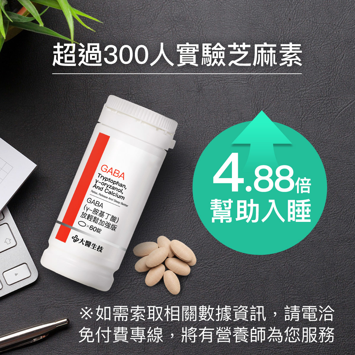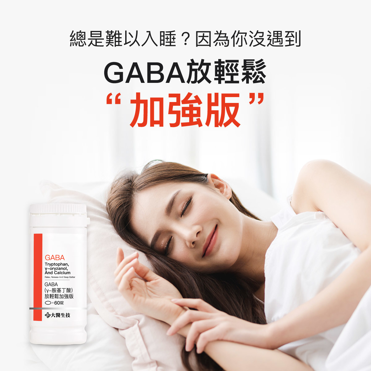 專業營養師表示:「入睡不難」,難在挑選正確的保健食品輔助!睡前2小時補充2錠大醫生技GABA放輕鬆加強版,可幫助我們入睡,再也不夜夜煎魚!