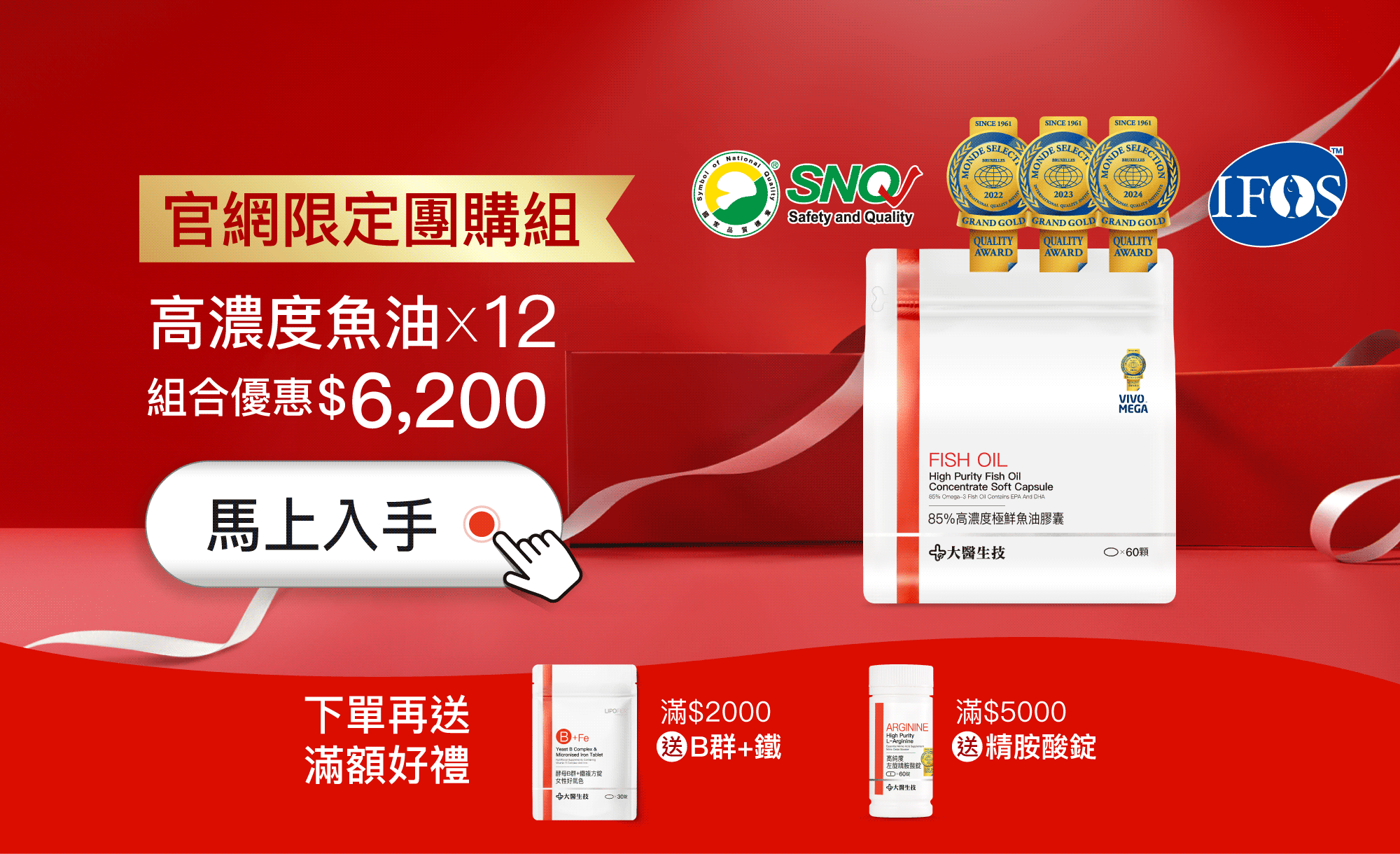 想要挑選到好魚油,首先先看這三大指標,尤其新鮮度更是挑選的首要條件!因為魚油是由不飽和脂肪酸所組成,容易酸敗及氧化的特性,將會破壞魚油的品質、風味及保存,也因此魚油的新鮮度表現是我們最重視的。而酸價是判斷魚油新鮮度非常關鍵的數據,越低的酸價,就代表魚油越新鮮、越穩定。