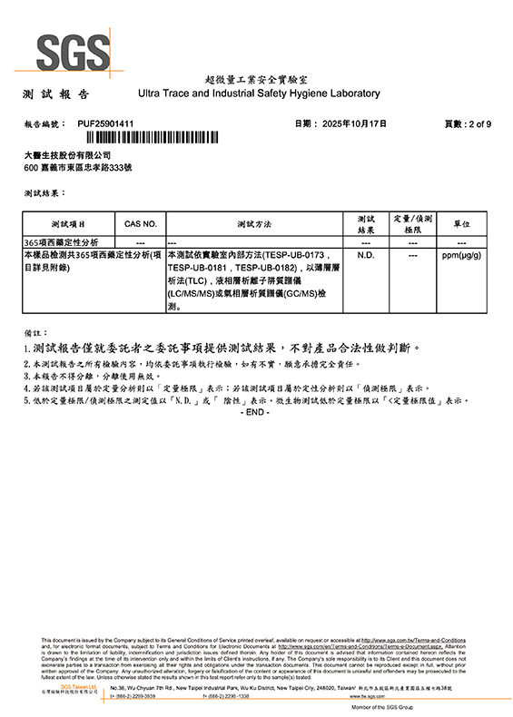 每批通過重金屬、氧化值(TOTOX)、環氧乙烷(ETO)與塑化劑等安全檢驗,品質安心。