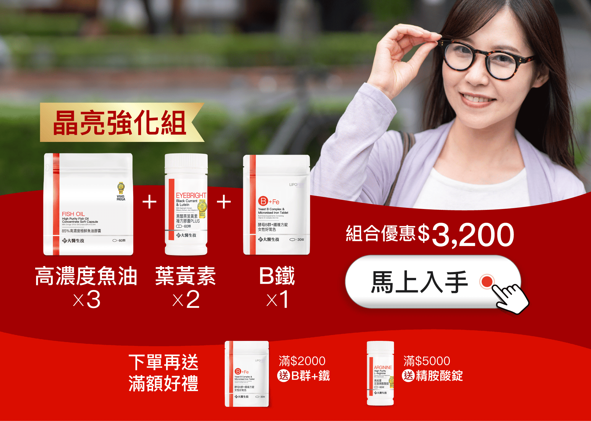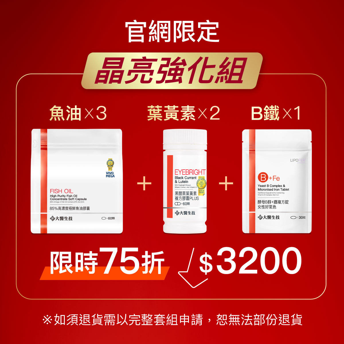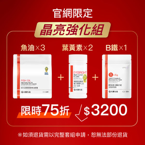 【晶亮強化組】高濃度魚油*3入+葉黃素*2入 +B鐵*1入