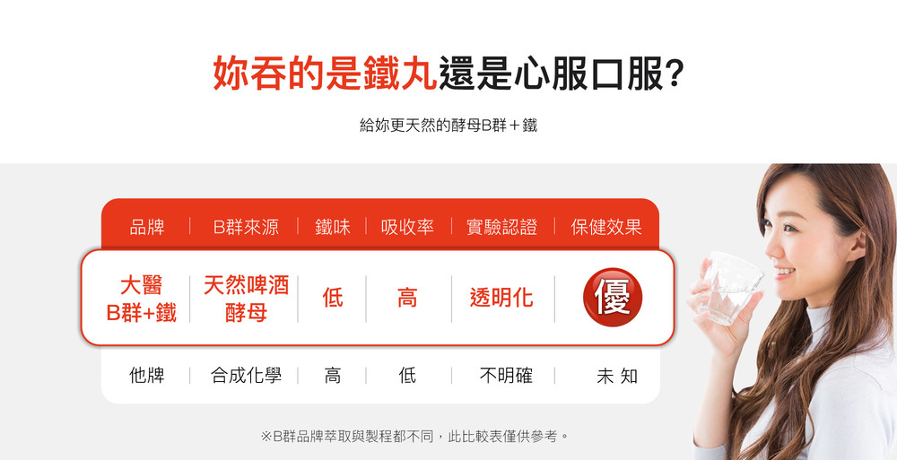 啤酒酵母(含維生素B1、維生素B2、D-泛酸鈣、菸鹼酸、維生素B6、D-生物素、葉酸、維生素B12)、微膠囊鐵(玉米澱粉、焦磷酸鐵、卵磷脂)、微結晶狀α-纖維素、二氧化矽、硬脂酸鎂