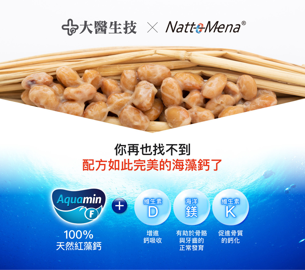 愛爾蘭紅藻粉(含紅藻鈣)、海水抽出物(氧化鎂、羧甲基纖維素鈉)、玉米糖漿粉、脂肪酸蔗糖酯、聚乙烯吡咯烷酮、納豆菌萃取物(阿拉伯膠、聚山梨醇酐脂肪酸酯八十、中鏈三酸甘油酯、玉米糖膠、納豆菌萃取物(含維生素K2))、蕎麥粉末(含維生素D3)