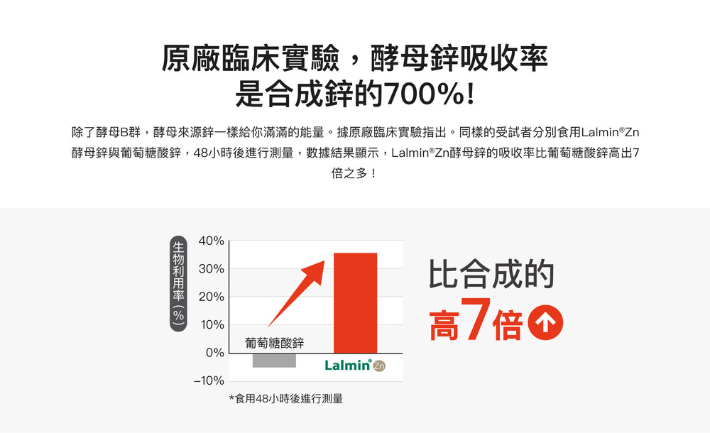 啤酒酵母(含維生素B1、維生素B2、D-泛酸鈣、菸鹼酸、維生素B6、D-生物素、葉酸、維生素B12)、鋅酵母(啤酒酵母、氧化鋅)、玉米糖漿粉、二氧化矽、硬脂酸鎂