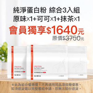 純淨優植蛋白粉【綜合3入組(原味*1+可可*1+抹茶*1)】