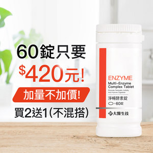 每瓶60錠入,售價為420元;同品項買2再送1。
